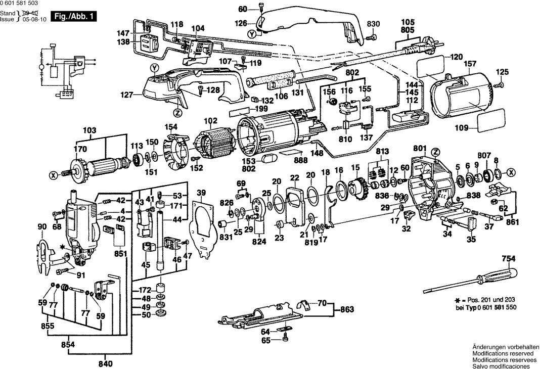 Spare parts list of model Bosch 0601581508 ( GST60PBE )