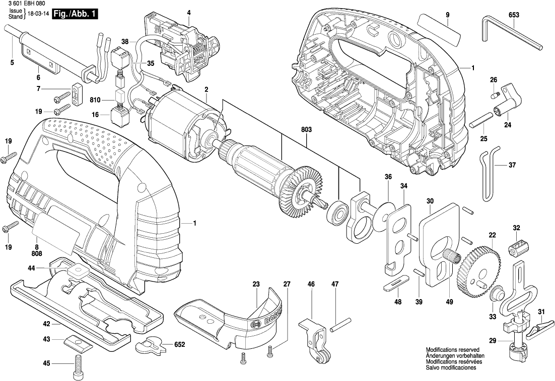 Here you will find all available parts and drawings of the 'Bosch 3601E8H0H0 ( GST75E )'. From here you can order all desired parts directly. Many parts must be ordered from the manufacturer, depending on the brand, this takes one to four weeks. All the information we have is on our website, we cannot advise you on what you need, for that you will need to return the machine for repair. Please note the following when ordering: