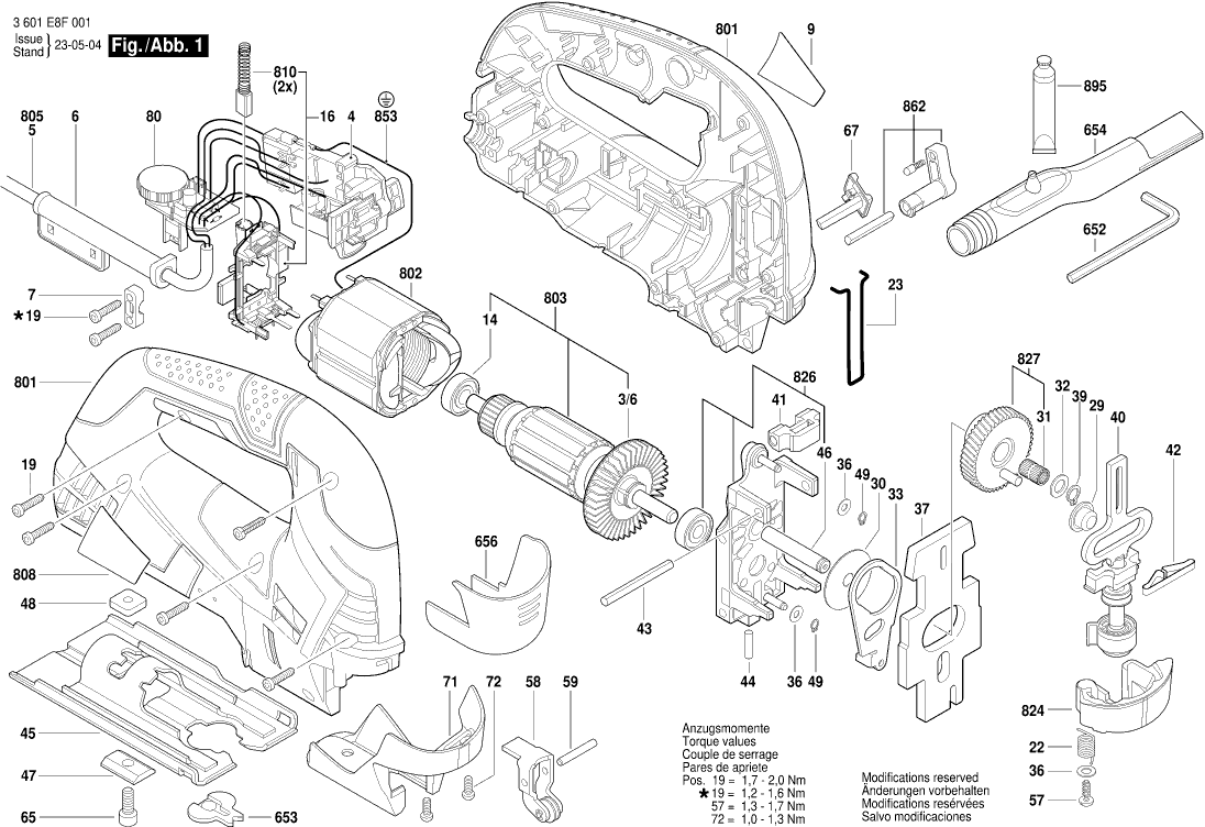 Spare parts list of model Bosch 3601E8F001 ( GST90BE )