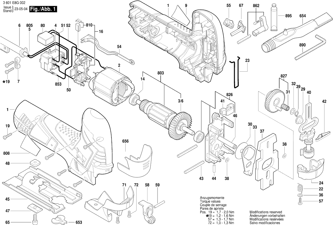 Technical drawing of model Bosch 3601E8G002 ( GST90E )
