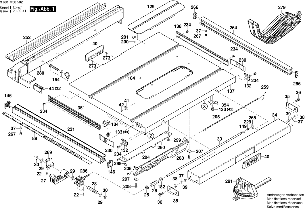 Here you will find all available parts and drawings of the 'Bosch 3601M30502 ( GTS10J )'. From here you can order all desired parts directly. Many parts must be ordered from the manufacturer, depending on the brand, this takes one to four weeks. All the information we have is on our website, we cannot advise you on what you need, for that you will need to return the machine for repair. Please note the following when ordering:
