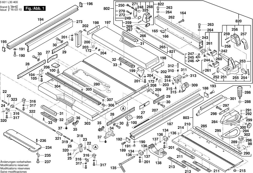 Spare parts list of model Bosch 3601L30400 ( GTS10XC )