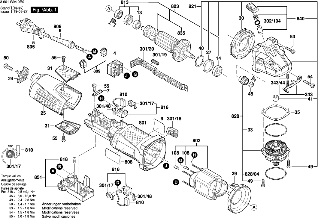 Here you will find all available parts and drawings of the 'Bosch 3601G940R0 ( GWS13-125CIE )'. From here you can order all desired parts directly. Many parts must be ordered from the manufacturer, depending on the brand, this takes one to four weeks. All the information we have is on our website, we cannot advise you on what you need, for that you will need to return the machine for repair. Please note the following when ordering: