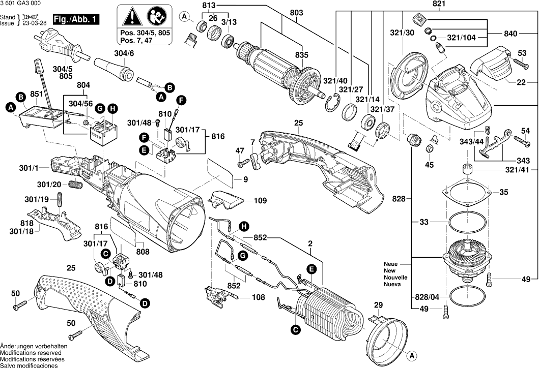 Here you will find all available parts and drawings of the 'Bosch 3601GA5100 ( GWS18-150PL )'. From here you can order all desired parts directly. Many parts must be ordered from the manufacturer, depending on the brand, this takes one to four weeks. All the information we have is on our website, we cannot advise you on what you need, for that you will need to return the machine for repair. Please note the following when ordering: