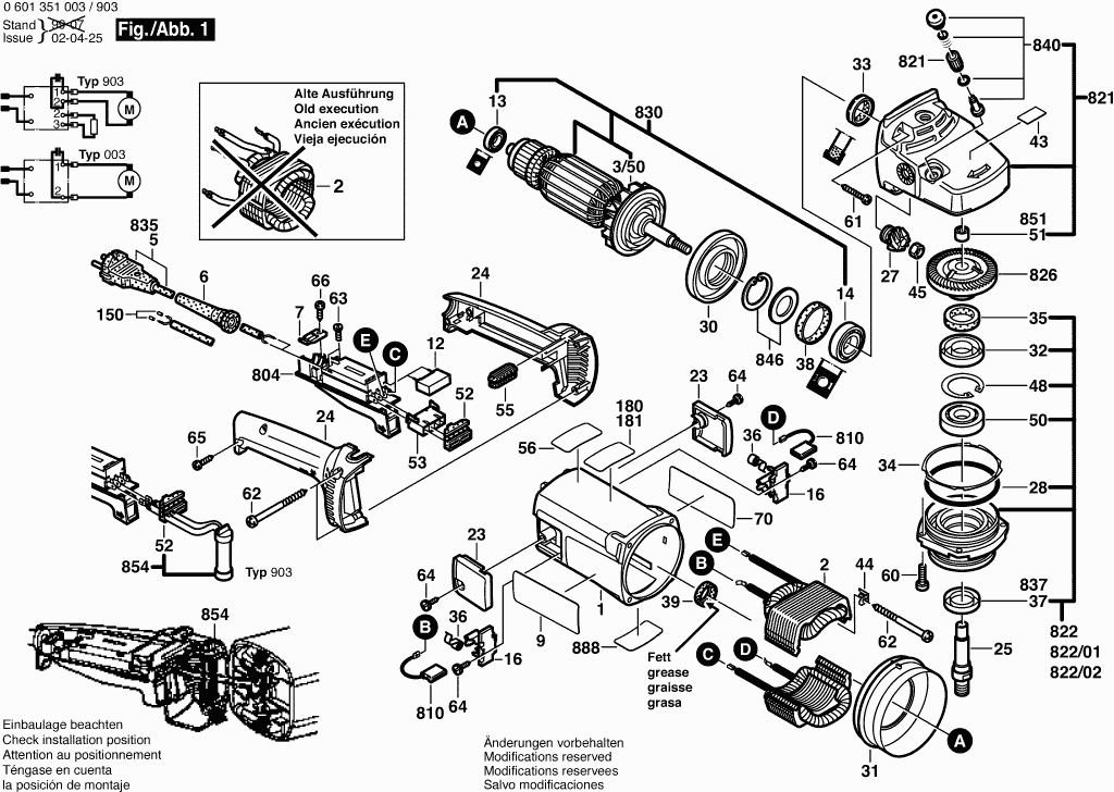 Spare parts list of model Bosch 0601351003 ( GWS18-180 )