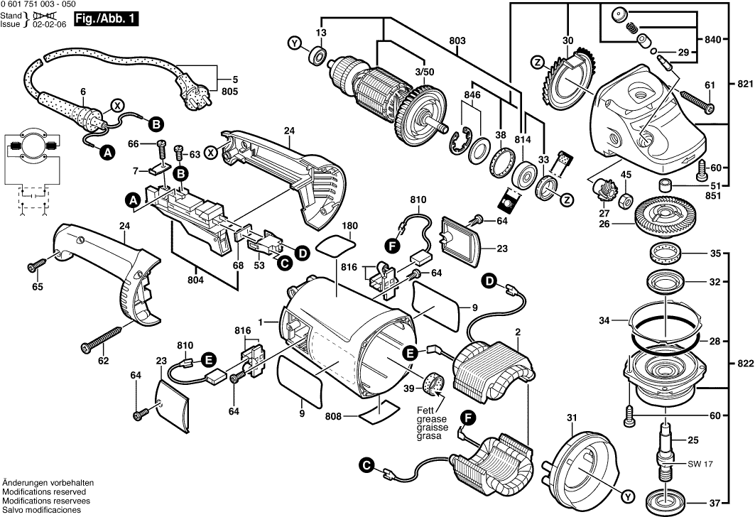 Spare parts list of model Bosch 0601751013 ( GWS20-180 )