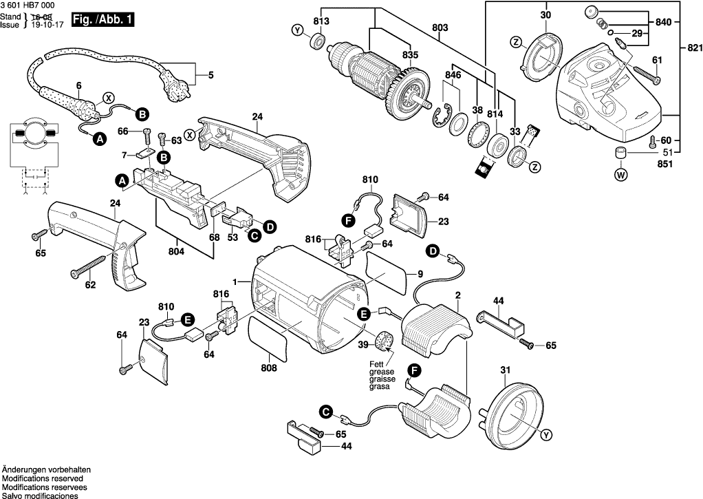 Spare parts list of model Bosch 3601HB70P0 ( GWS2000 )