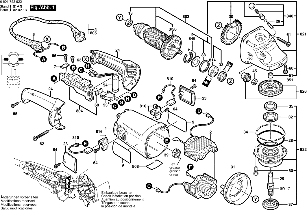 Spare parts list of model Bosch 0601752922 ( GWS2000-23J )