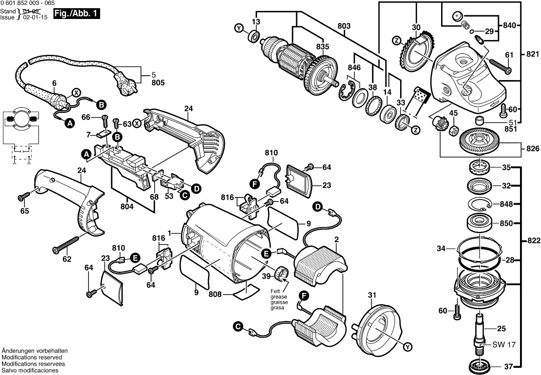Spare parts list of model Bosch 0601852008 ( GWS21-230H )