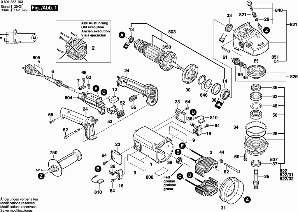 Spare parts list of model Bosch 0601353103 ( GWS21U )