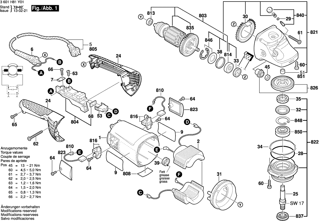Spare parts list of model Bosch 3601H82X01 ( GWS22-230H )