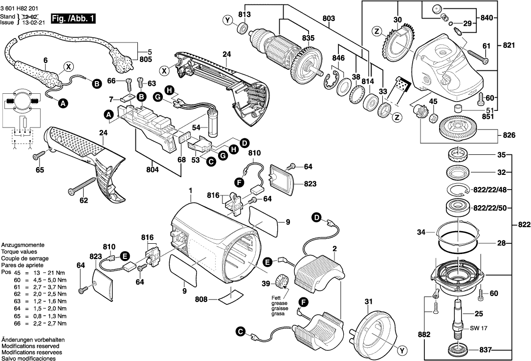 Spare parts list of model Bosch 3601H82201 ( GWS22-230JH )