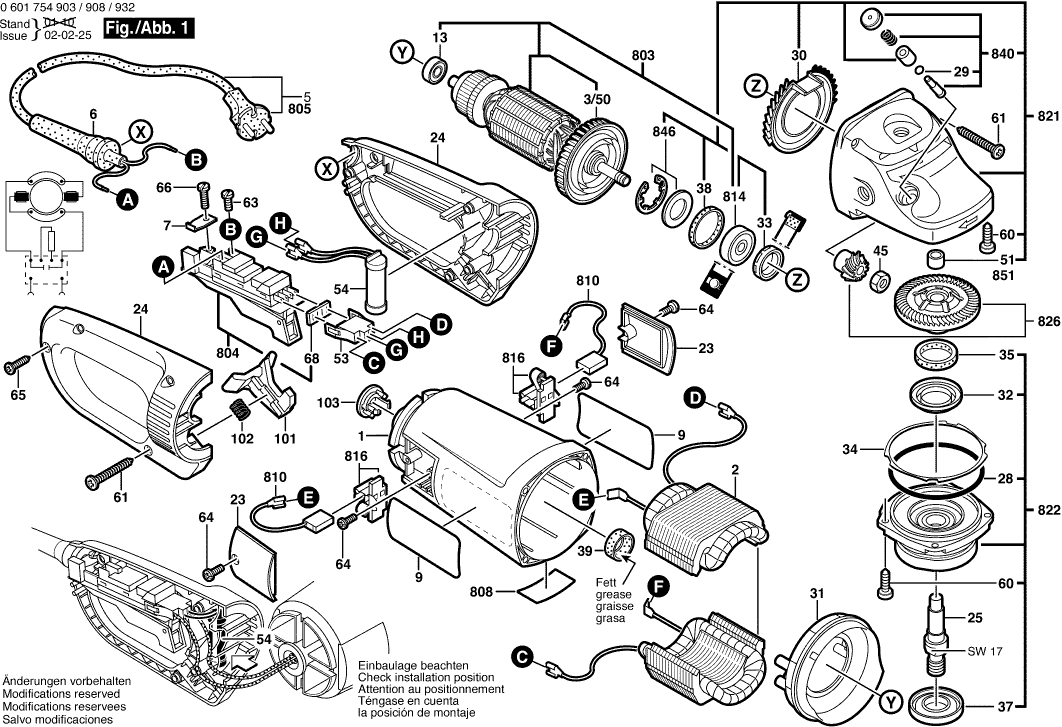 Spare parts list of model Bosch 0601754908 ( GWS23-230J )