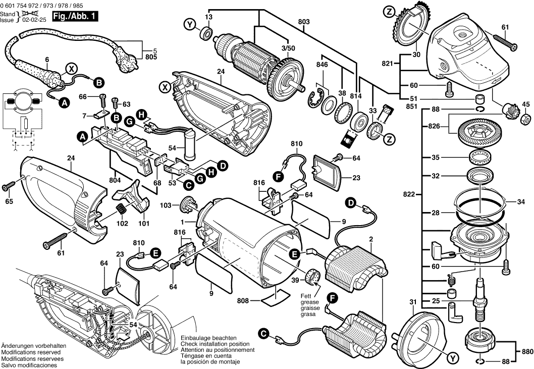 Spare parts list of model Bosch 0601754978 ( GWS23-230JS )