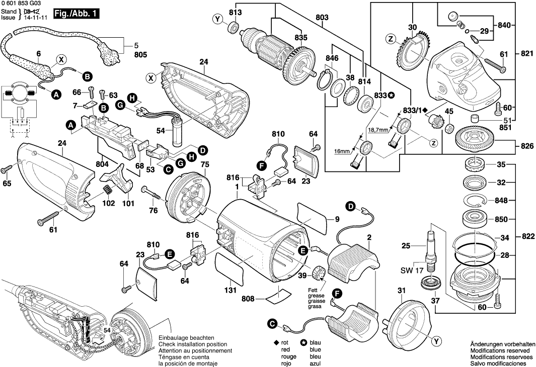 Spare parts list of model Bosch 0601854G03 ( GWS24-230JBV )