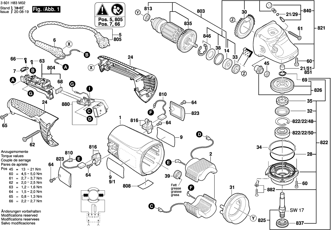 Here you will find all available parts and drawings of the 'Bosch 3601H84M03 ( GWS24-230JH )'. From here you can order all desired parts directly. Many parts must be ordered from the manufacturer, depending on the brand, this takes one to four weeks. All the information we have is on our website, we cannot advise you on what you need, for that you will need to return the machine for repair. Please note the following when ordering: