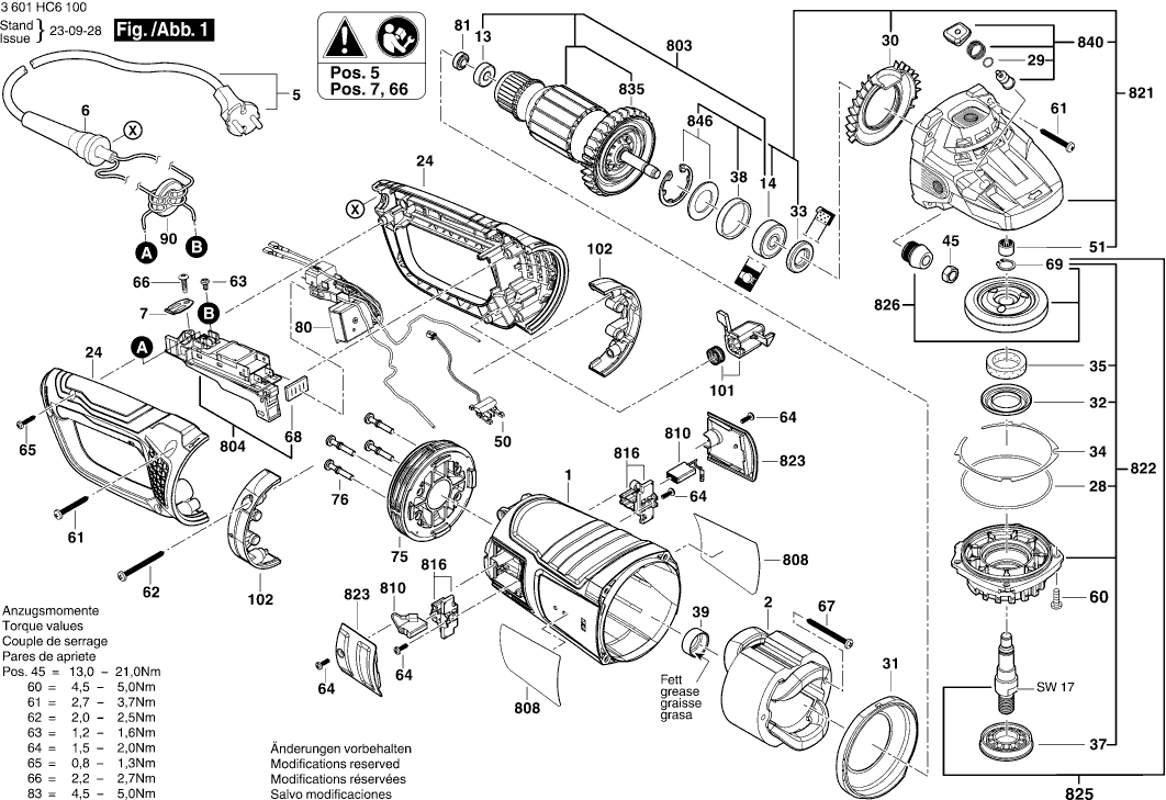 Spare parts list of model Bosch 3601HC6300 ( GWS27-180JR )