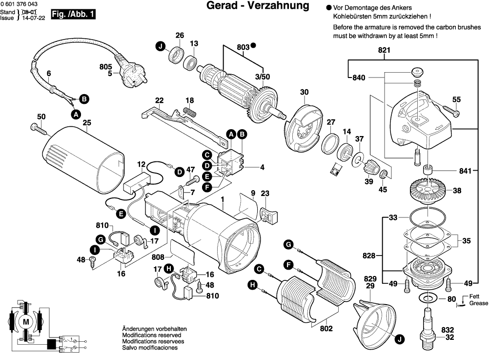 Technical drawing of model Bosch 0601376003 ( GWS580 )