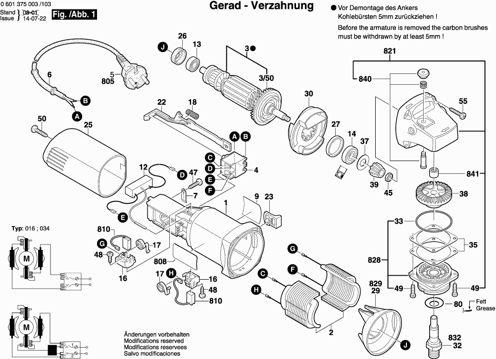 Spare parts list of model Bosch 0601375903 ( GWS6-115 )