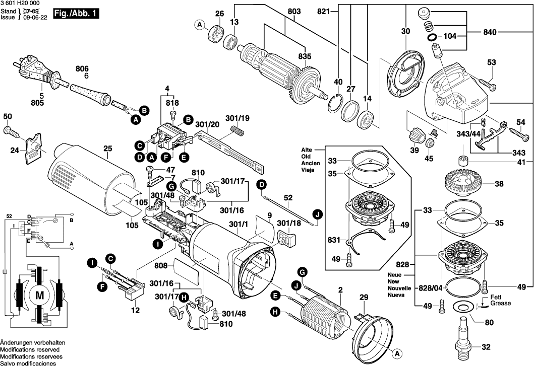 Spare parts list of model Bosch 3601H20030 ( GWS8-115 )
