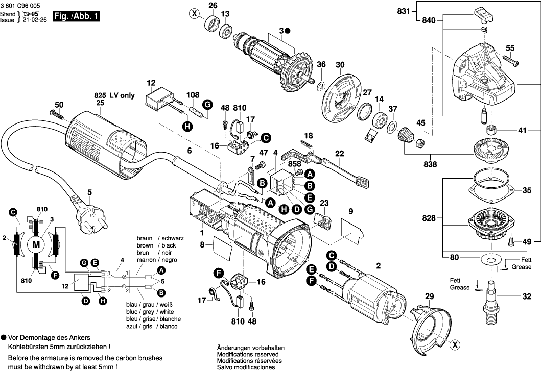Spare parts list of model Bosch 3601C96006 ( GWS880 )