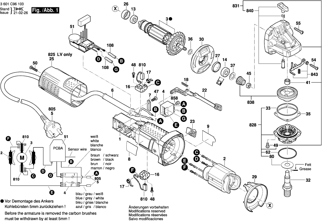 Spare parts list of model Bosch 3601C96104 ( GWS9-125S )