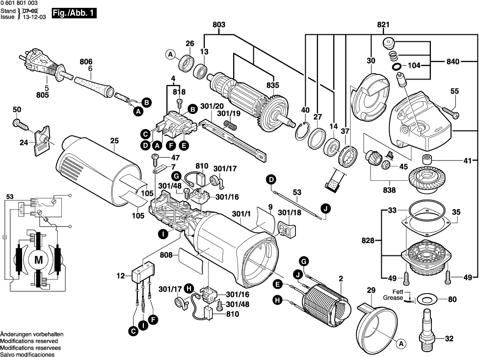 Spare parts list of model Bosch 0601801003 ( GWS9-125 )