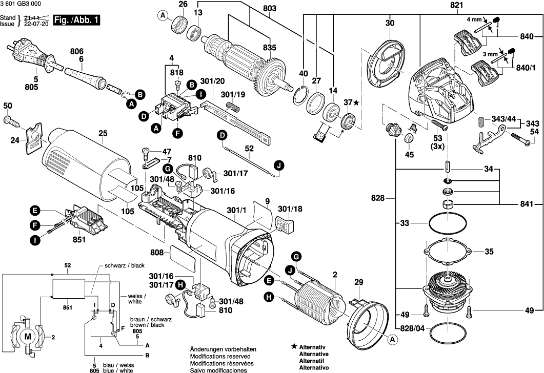 Spare parts list of model Bosch 3601GB3000 ( GWX10-125 )