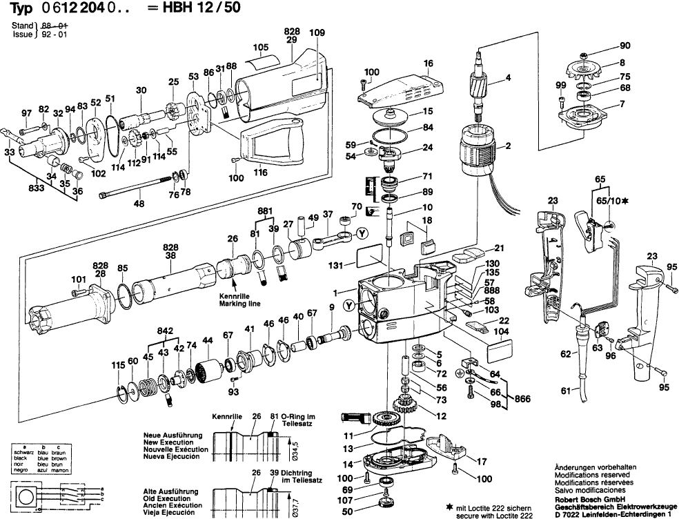 Spare parts list of model Bosch 0612204001 ( HBH12/50 )