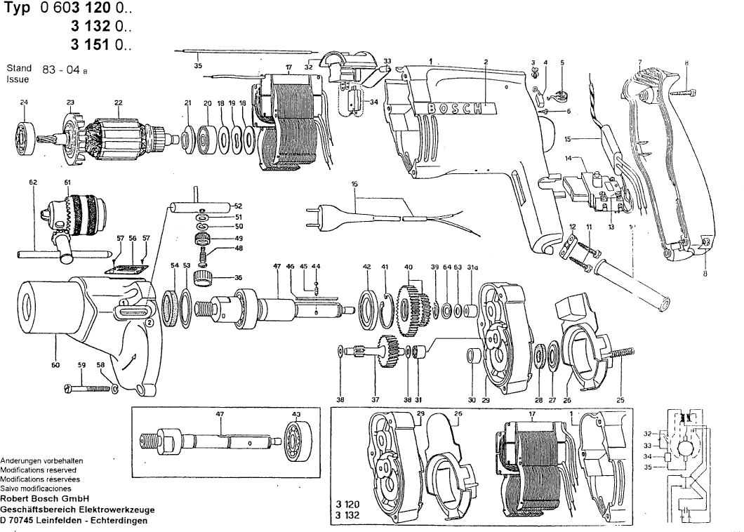 Here you will find all available parts and drawings of the 'Bosch 0603132036 ( M21SO )'. From here you can order all desired parts directly. Many parts must be ordered from the manufacturer, depending on the brand, this takes one to four weeks. All the information we have is on our website, we cannot advise you on what you need, for that you will need to return the machine for repair. Please note the following when ordering: