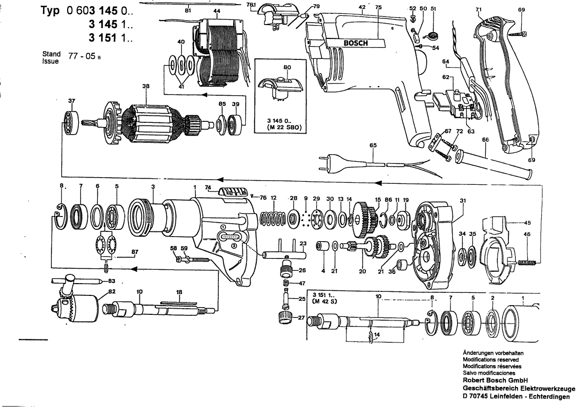 Spare parts list of model Bosch 0603145003 ( M22SBO )