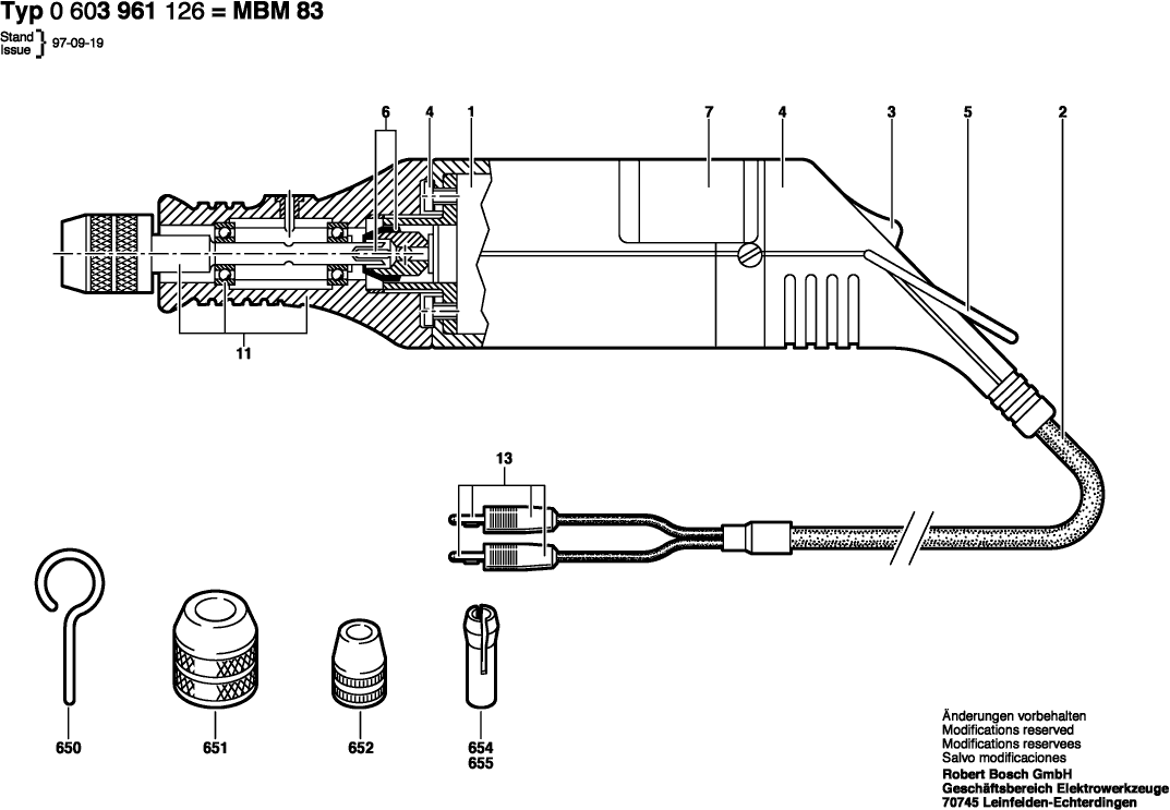 Spare parts list of model Bosch 0603961126 ( MBM83 )