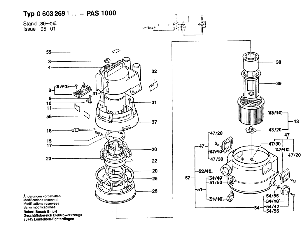 Spare parts list of model Bosch 0603269103 ( PAS1000 )