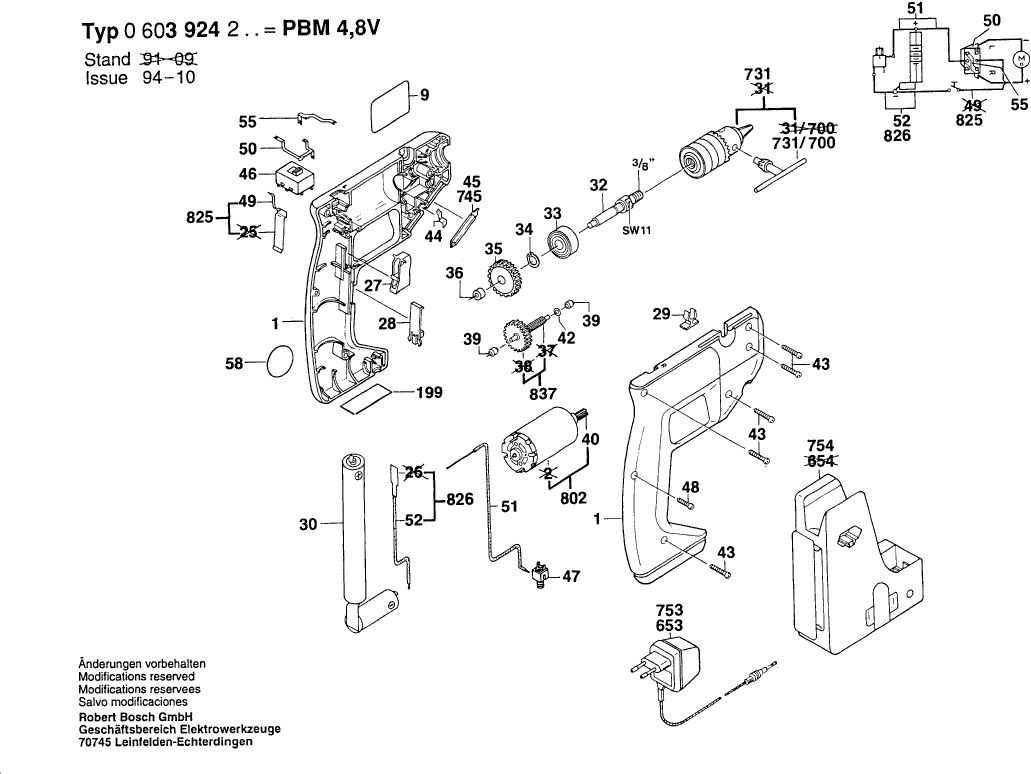 Spare parts list of model Bosch 0603924203 ( PBM4,8V )