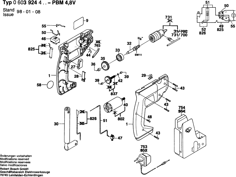 Spare parts list of model Bosch 0603924403 ( PBM4,8V )