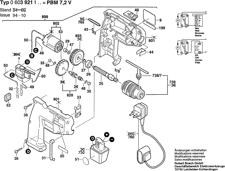 Spare parts list of model Bosch 0603921123 ( PBM7,2V )