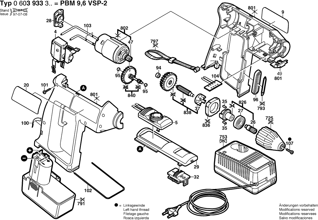 Here you will find all available parts and drawings of the 'Bosch 0603933303 ( PBM9,6VSP-2 )'. From here you can order all desired parts directly. Many parts must be ordered from the manufacturer, depending on the brand, this takes one to four weeks. All the information we have is on our website, we cannot advise you on what you need, for that you will need to return the machine for repair. Please note the following when ordering: