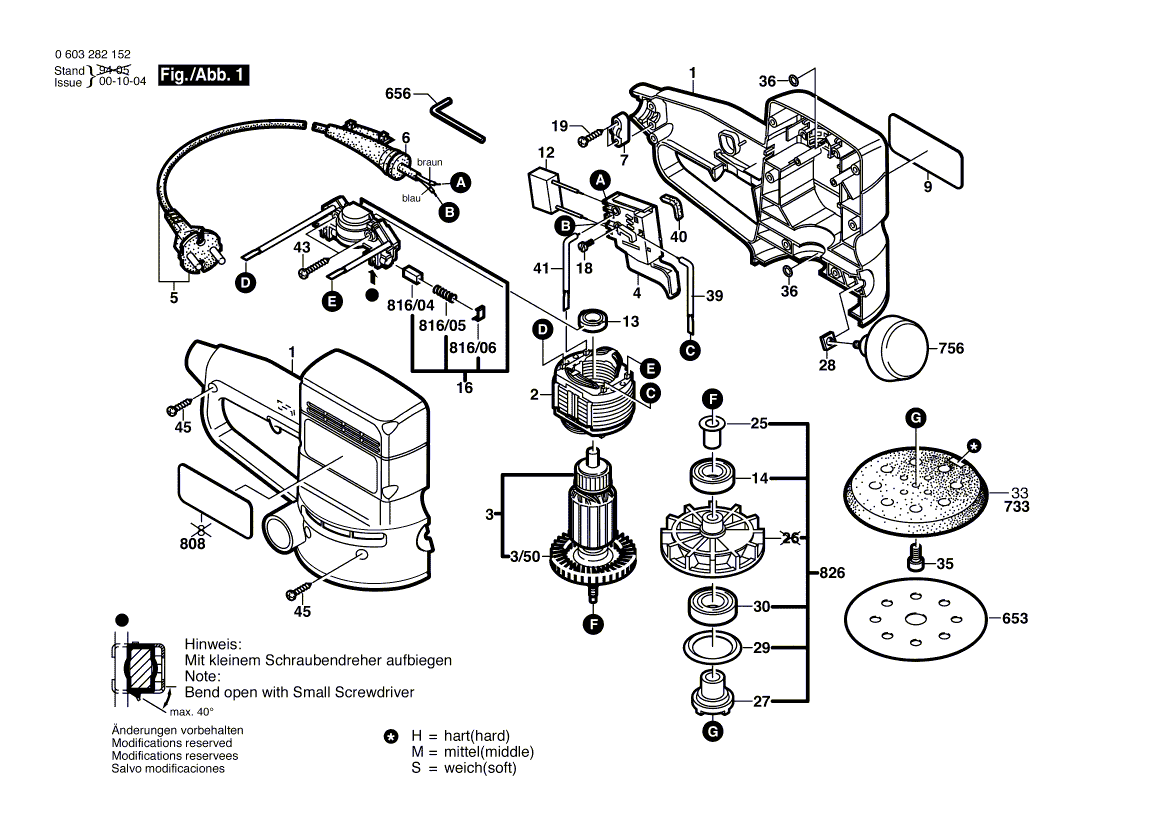 Spare parts list of model Bosch 0603282152 ( PEX115A-1 )