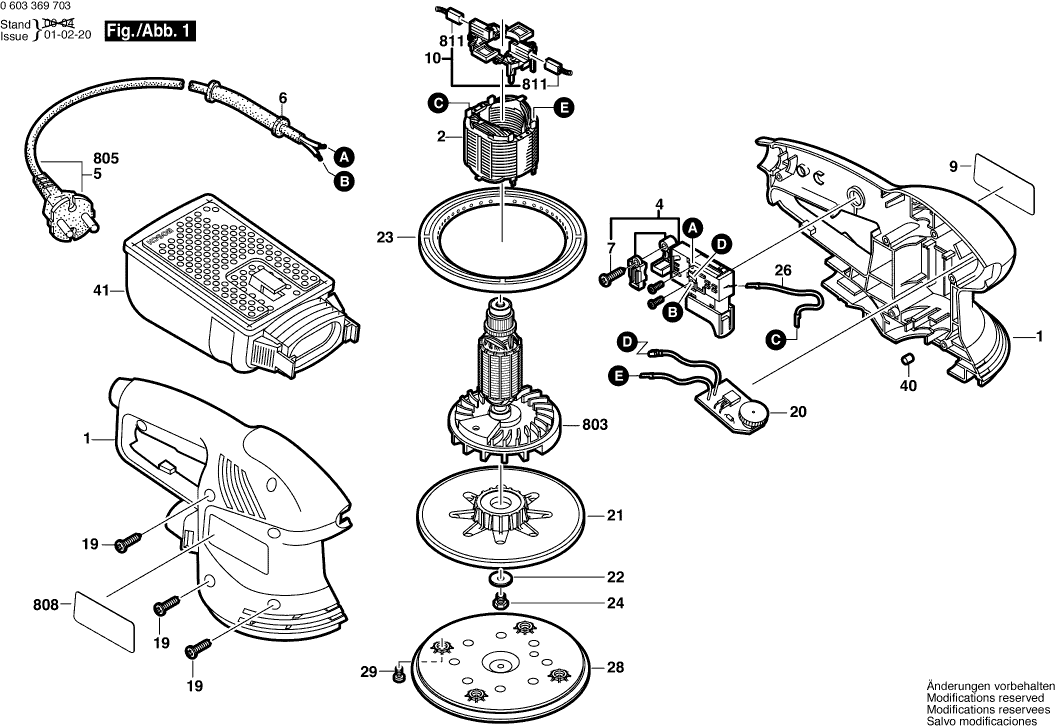 Spare parts list of model Bosch 0603369703 ( PEX270AE )