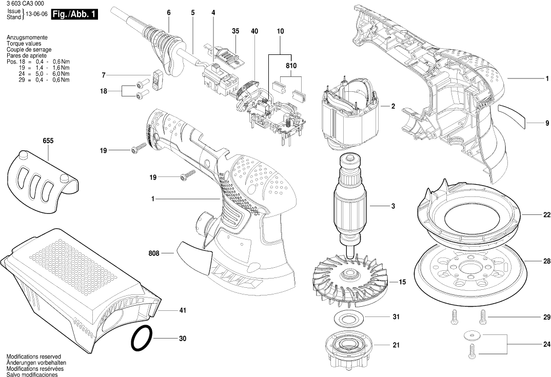 Technical drawing of model Bosch 3603CA3000 ( PEX300AE )