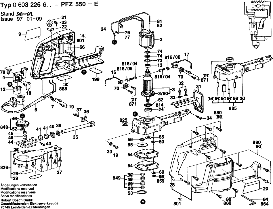 Spare parts list of model Bosch 0603226603 ( PFZ550E )