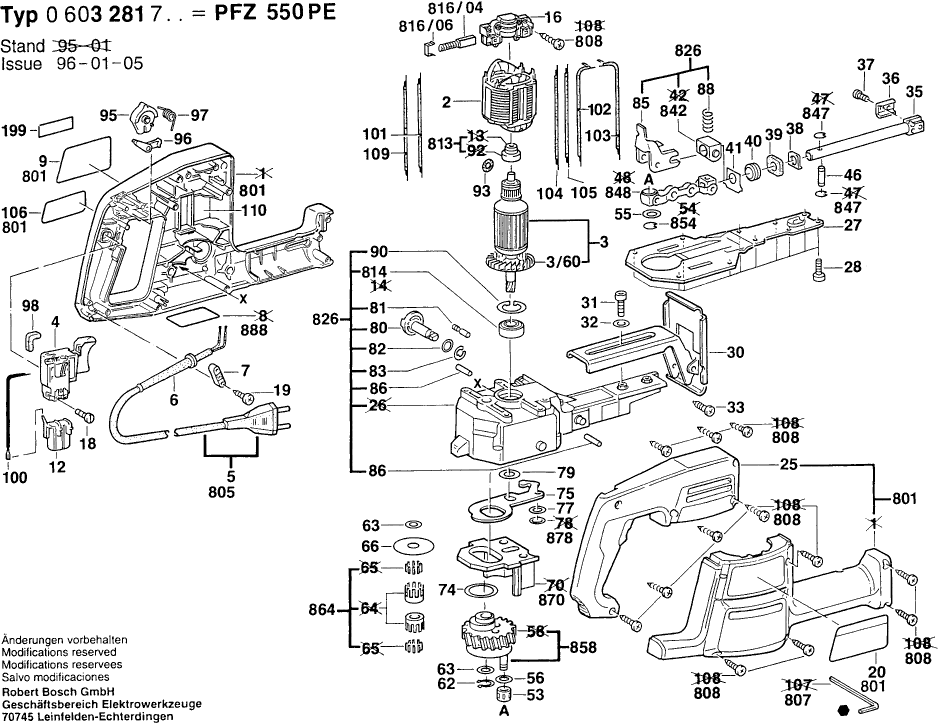 Spare parts list of model Bosch 0603281703 ( PFZ550PE )