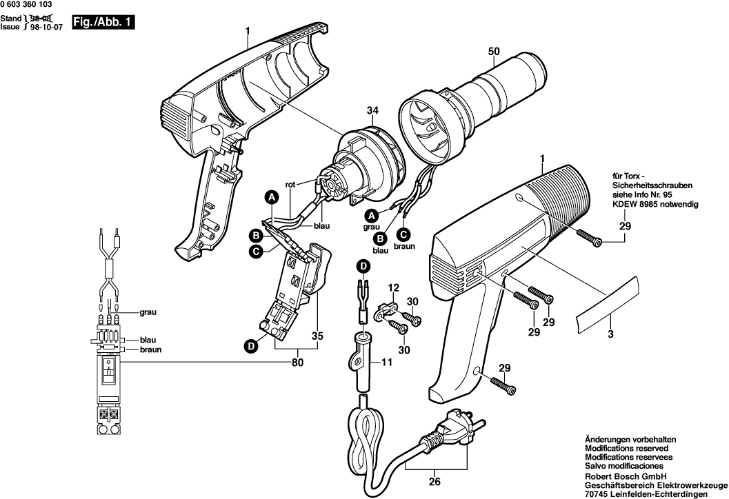 Spare parts list of model Bosch 0603360103 ( PHG2 )