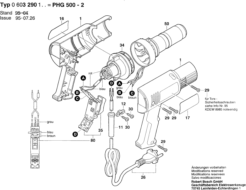 Spare parts list of model Bosch 0603290103 ( PHG500-2 )
