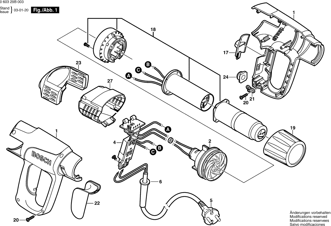 Spare parts list of model Bosch 060329B008 ( PHG600-3 )