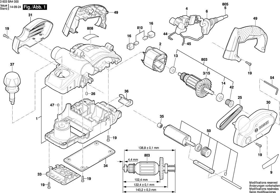 Spare parts list of model Bosch 3603BA4000 ( PHO1500 )