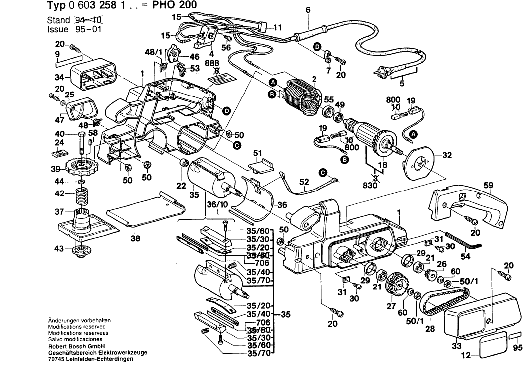 Spare parts list of model Bosch 0603258103 ( PHO200 )