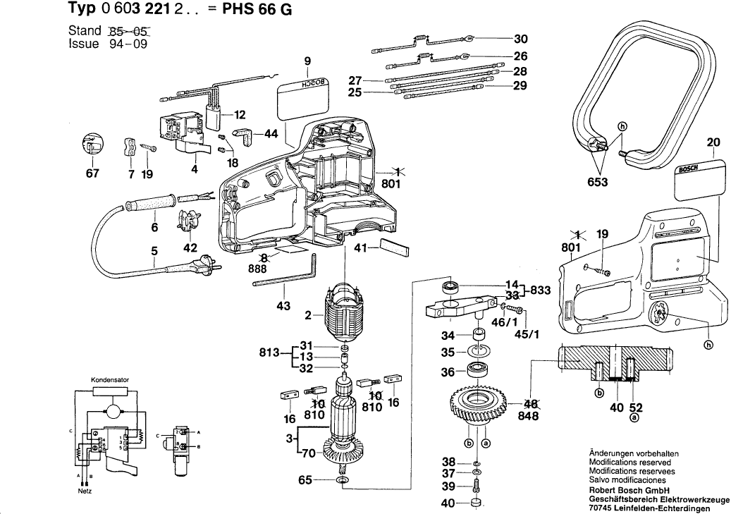 Spare parts list of model Bosch 0603221203 ( PHS66G )