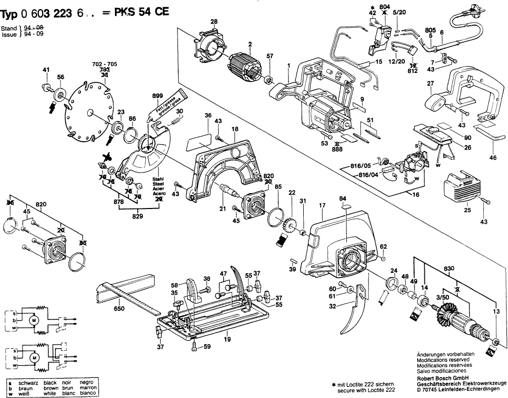 Here you will find all available parts and drawings of the 'Bosch 0603223603 ( PKS54CE )'. From here you can order all desired parts directly. Many parts must be ordered from the manufacturer, depending on the brand, this takes one to four weeks. All the information we have is on our website, we cannot advise you on what you need, for that you will need to return the machine for repair. Please note the following when ordering: