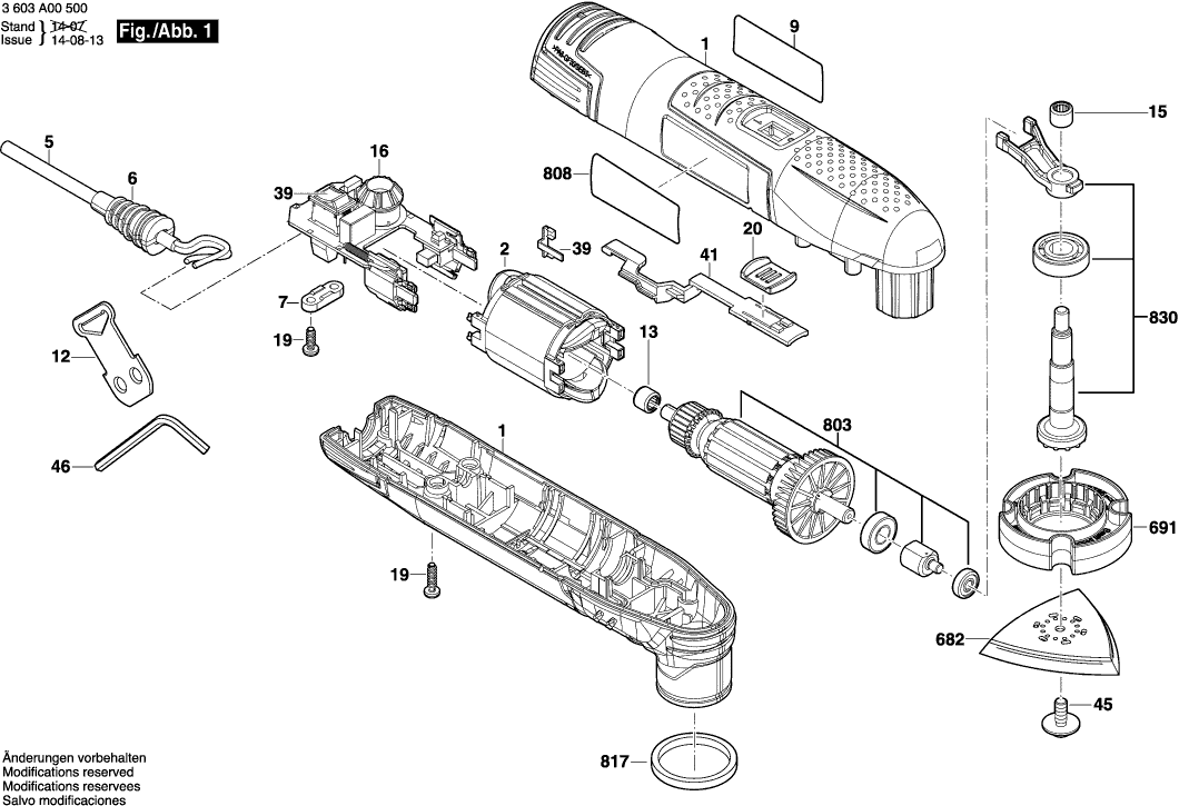 Technical drawing of model Bosch 3603A00500 ( PMF190E )